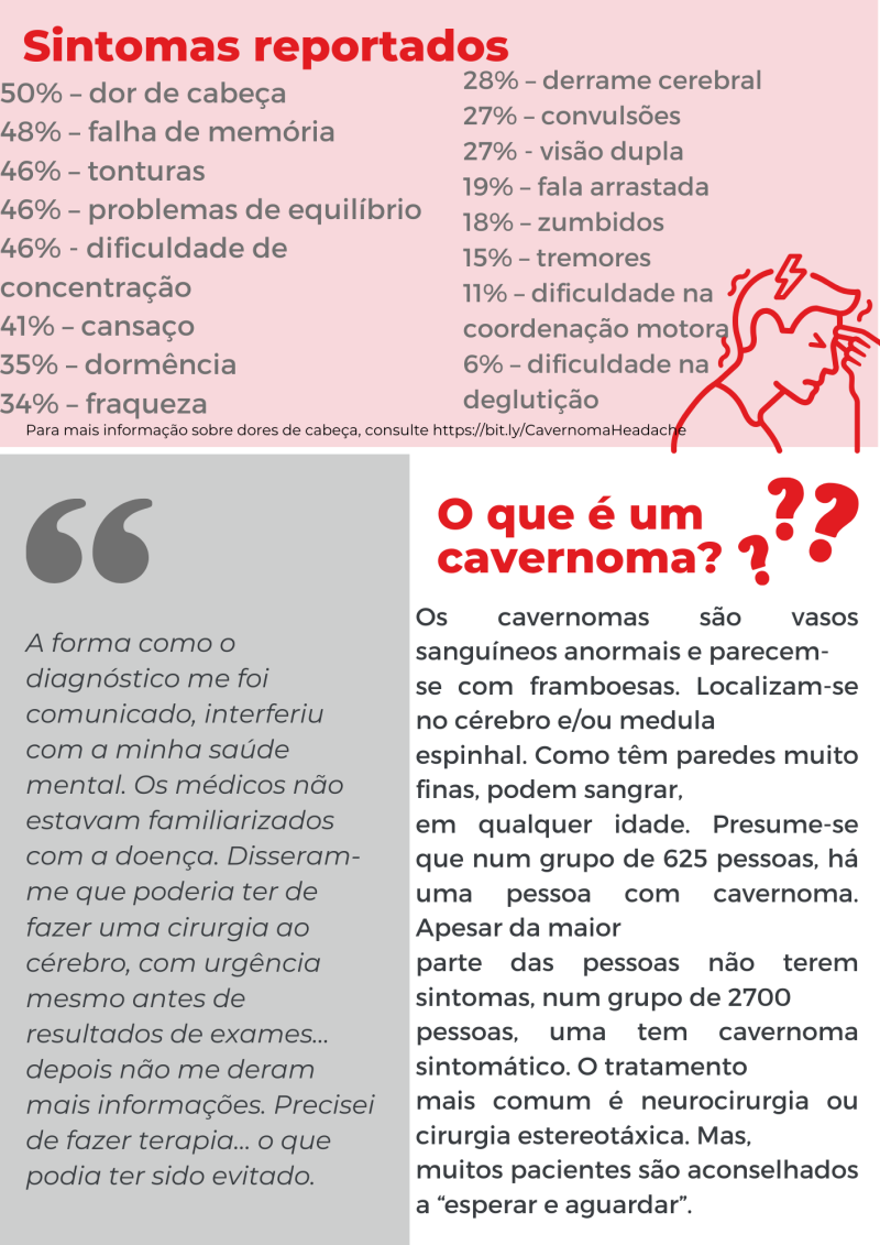 - Compreender o impacto dos cavernomas na saúde mental, saúde física e saúde global;